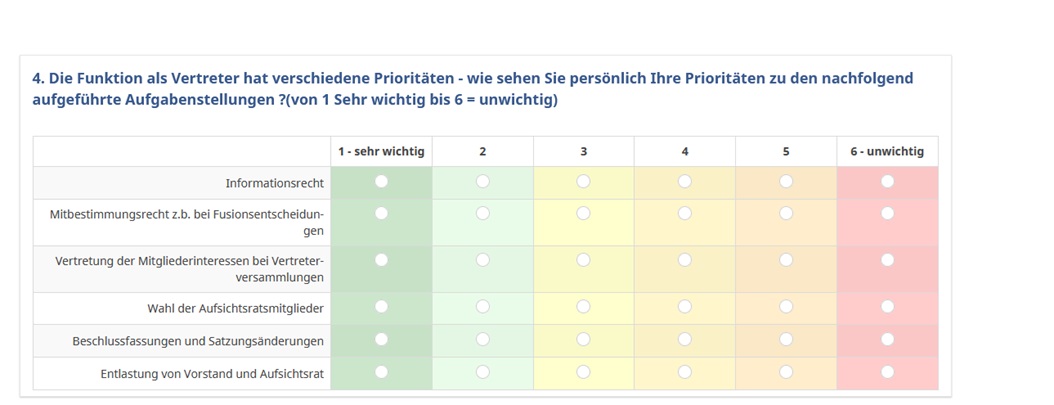 - Neues Befragungstool zur Erhebung von Handlungsfeldern zur Optimierung der Zusammenarbeit mit gewählten Vertretern von Volksbanken und Raiffeisenbanken